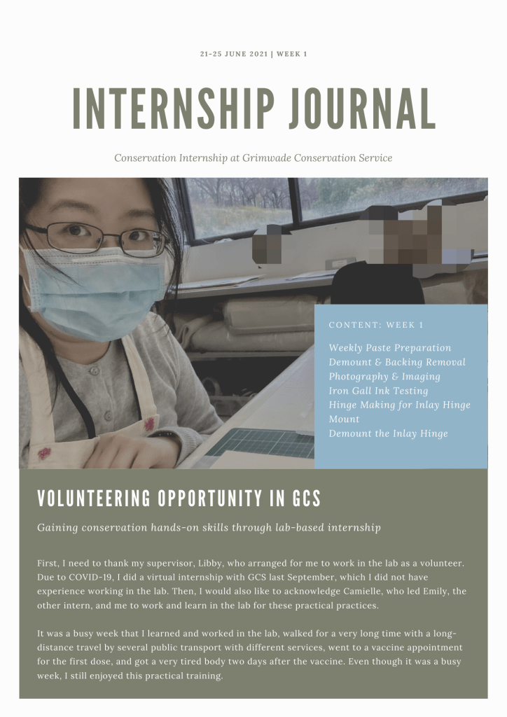 Internship Journal – Week 1 Posted bySandraJune 26, 2021Posted inLearning JournalTags:Conservation Internship, Grimwade Conservation Service Share this: Click to share on X (Opens in new window) X Click to share on Facebook (Opens in new window) Facebook Like Loading... Published by Sandra Hi, I am a freelance paper conservator in Melbourne and specialising in East Asian paintings conservation. Welcome to my place! Please feel free to contact me if you have questions. View more posts
